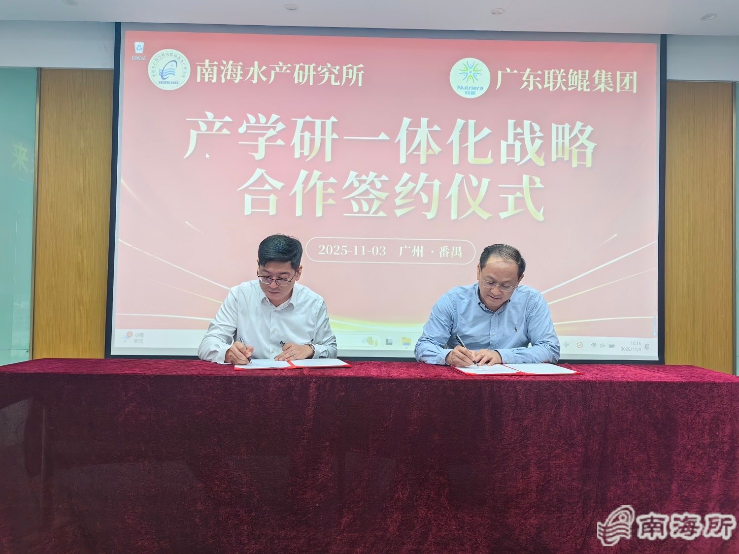 11月3日,中国水产科学研究院南海水产研究所与广东联鲲集团有限公司正式签署战略合作协议,南海所副所长马振华研究员与联鲲集团总裁杨勇博士出席签约仪式并签字。此次合作标志着双方开启产学研一体化深度协作新篇章。