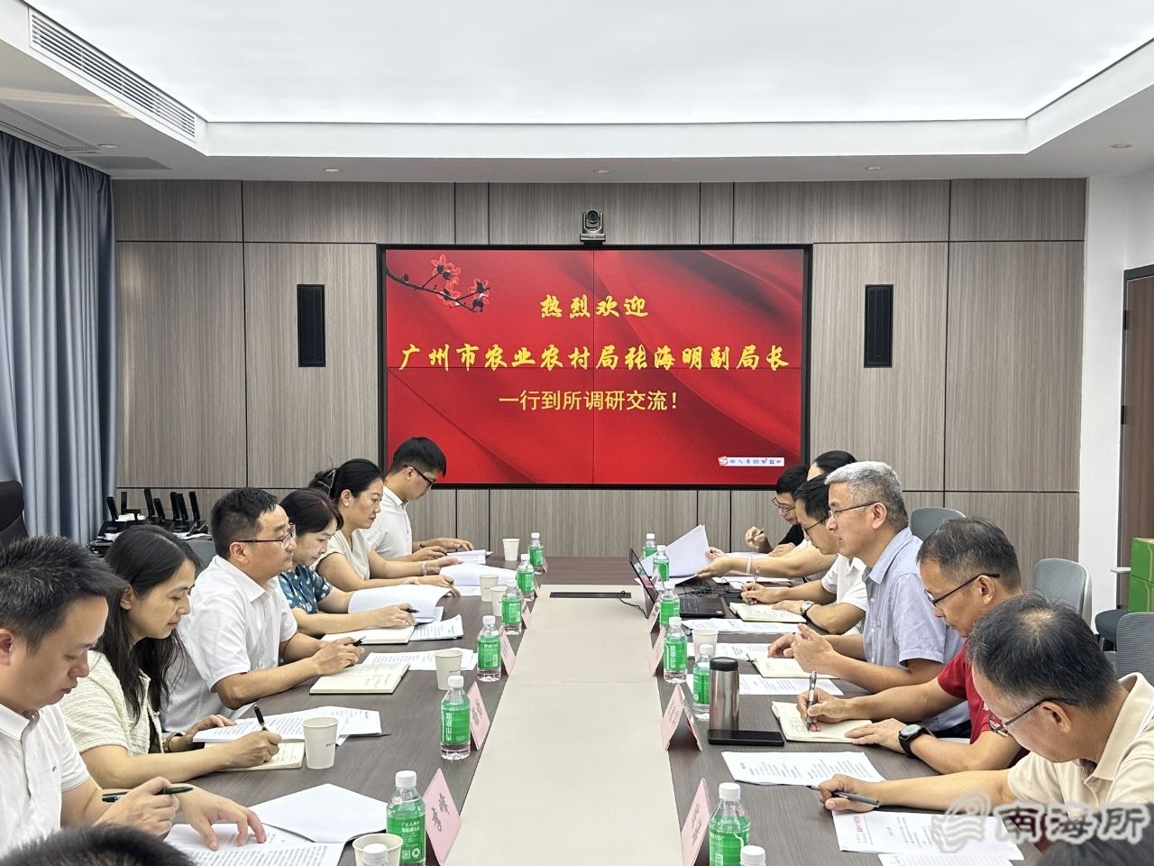 10月9日上午,广州市农业农村局副局长张海明带领渔业处、科教处相关负责人一行5人,到中国水产科学研究院南海水产研究所开展产业科技创新调研,广州市科学技术局、广州市工业和信息化局相关处室负责人陪同调研。南海所所长张殿昌,科研处和相关研究室负责人、专家参加座谈。
